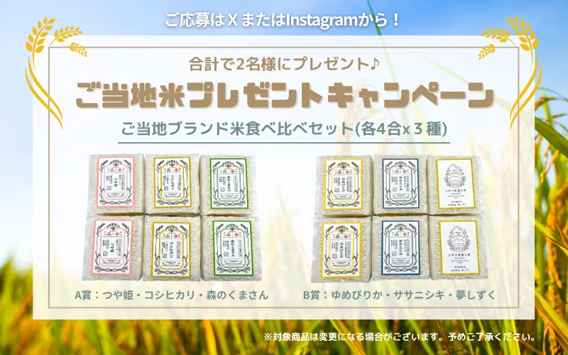 こちらも、当選者にはDMでのご連絡となりますので、ぜひ気軽に参加してください。お米好きや旅好きの方には特にオススメです!