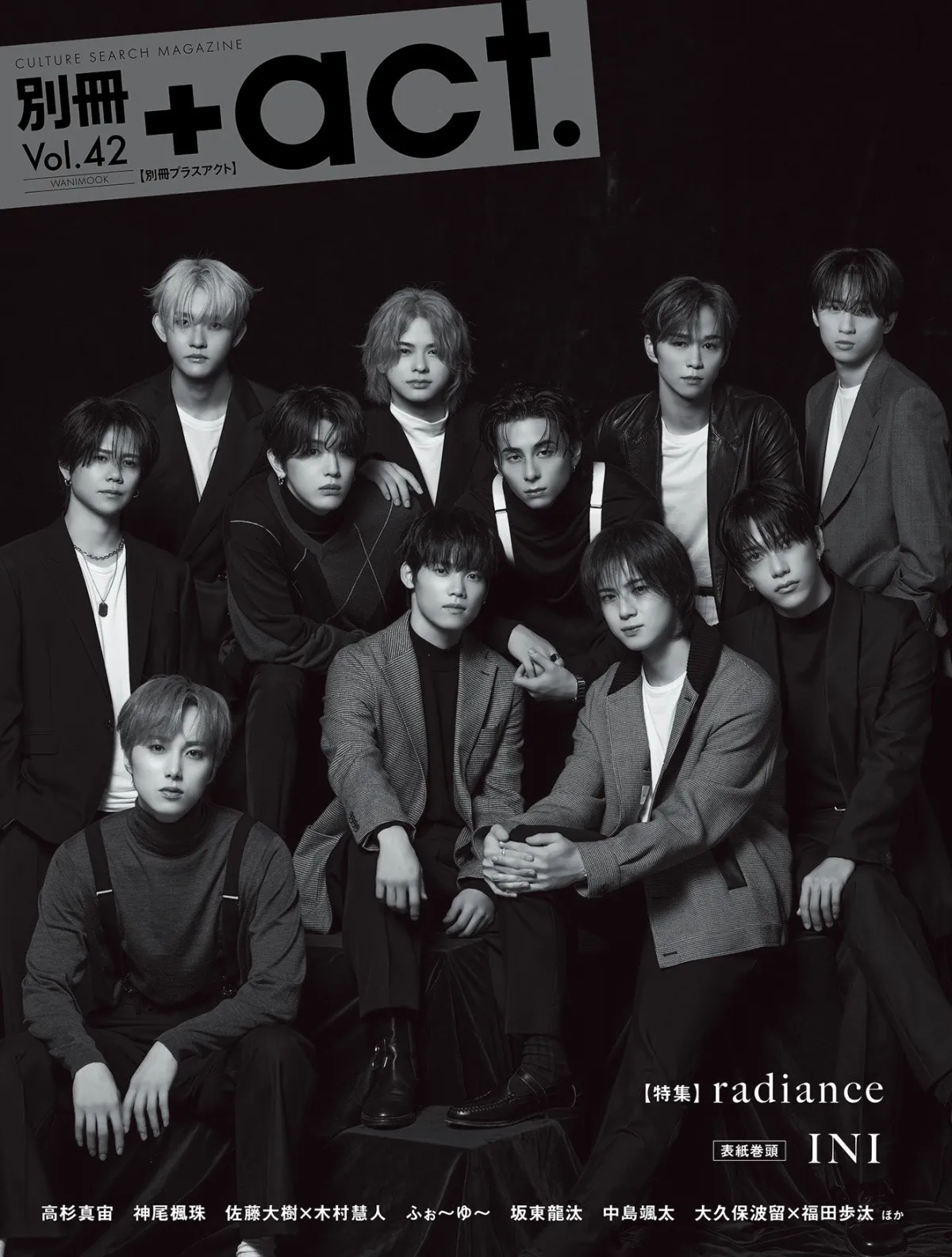 2025年10月16日(木)、待望の『別冊+act.(プラスアクト)42号』が発売されます。この号では、いま話題のグループINIが表紙巻頭に登場し、特集テーマは『radiance』です。大ボリュームの16ページにわたって、撮り下ろしポートレイトやインタビューを紹介します。