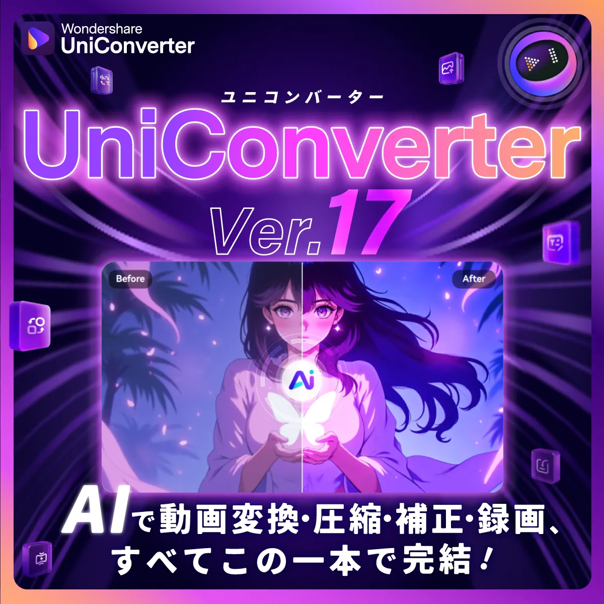 株式会社ワンダーシェアーソフトウェアは、2025年10月26日に「Wondershare UniConverter」の最新バージョン「V17」をリリースしました。この新バージョンは、映像制作をサポートする強力なツールとして生まれ変わっています。