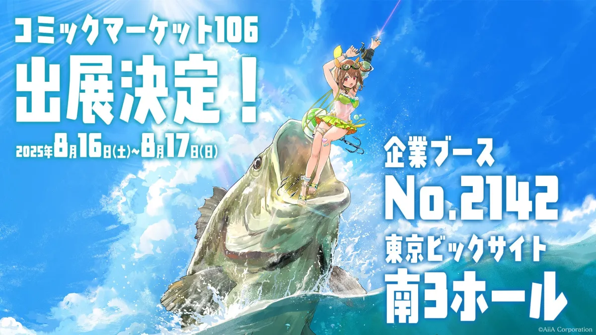 美少女キャラクターとルアーの素敵なコラボレーション、『ルアープリンセス』プロジェクトが2025年8月16日(土)から開催されるコミックマーケット106(C106)に出展します。このプロジェクトを展開するのは、アイア株式会社。会場は東京ビッグサイトの企業ブース南3ホールNo. 2142です。