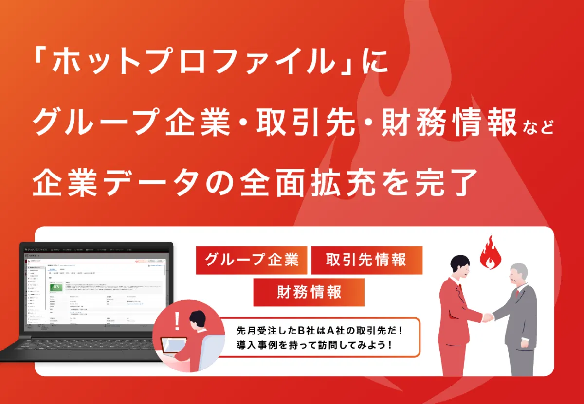 株式会社ハンモック(本社:東京都新宿区)は、同社のクラウド型名刺管理・営業支援ツール「ホットプロファイル」の企業データベースの全面拡充を発表しました。この改修により、営業に直結した情報の整備が完了しました。新たに追加されたデータには、グループ企業の情報や財務情報、取引先情報、役員及び株主情報などが含まれ、営業担当者が企業を多面的に理解するための土台が整います。