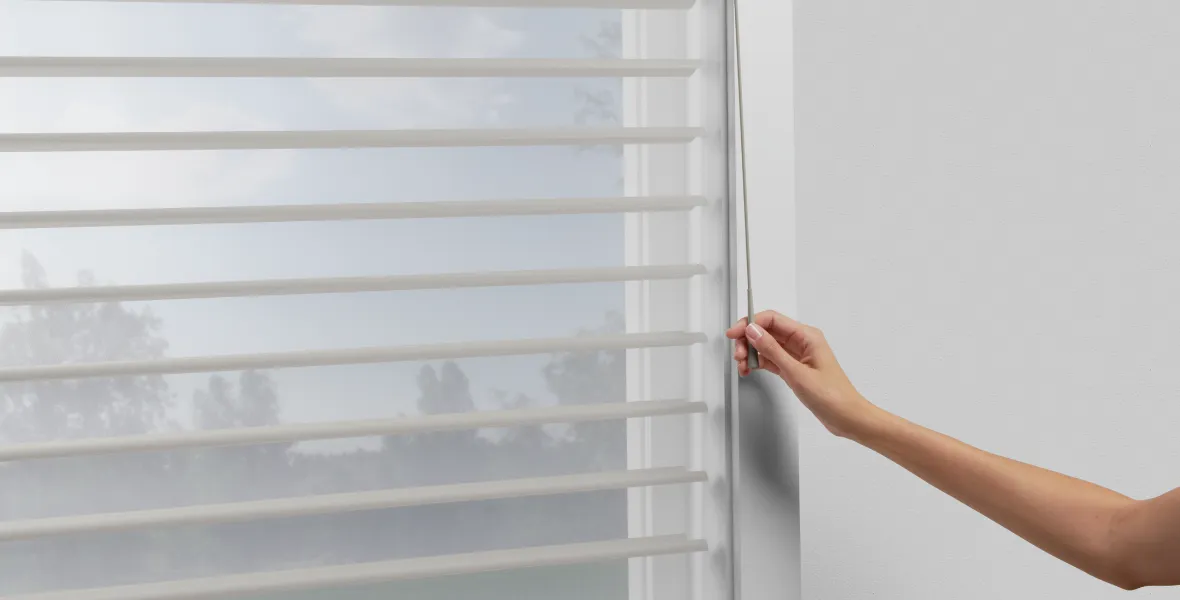 「SoftTouch™」は、非常にシンプルで直感的な操作を実現します。ワンドを軽く上げたり下げたりするだけで、シェードがスムーズに昇降します。このコードレス設計により、特に小さなお子様やペットがいる家庭でも安全に使用でき、安心して日常生活を楽しむことができます。