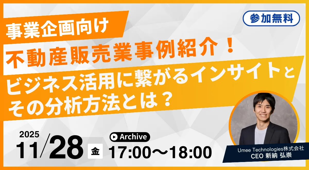 Umee Technologies株式会社が主催するオンラインセミナー、「不動産販売業事例紹介!事業企画向け、ビジネス活用に繋がるインサイトとその分析方法とは?」が、2025年11月28日(金)17:00から開催されます。このセミナーは、事業企画担当者が抱えるインサイト分析における課題を解決するために、顧客のリアルな声に基づいた分析手法を提供します。