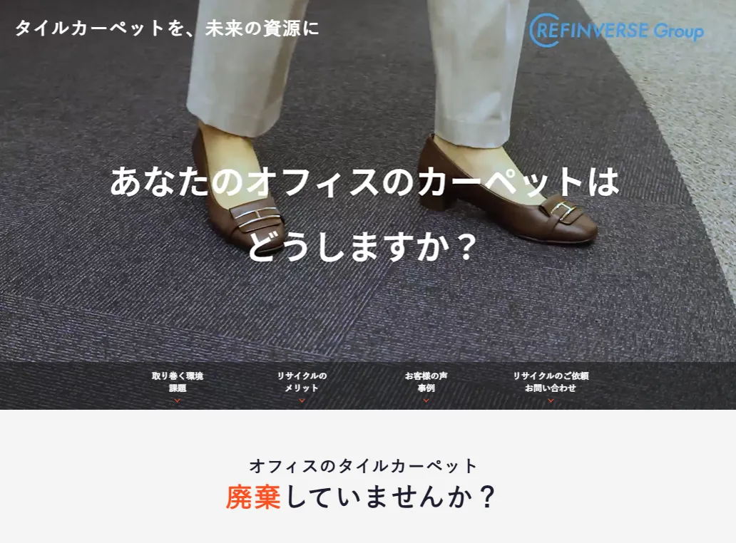 廃棄タイルカーペットのリサイクルは、環境への配慮とオフィスの機能性を両立させる新しいスタンダードとして、多くの企業に注目されています。リファインバースグループの特設ページには、詳細な情報が掲載されていますので、ぜひご覧ください。