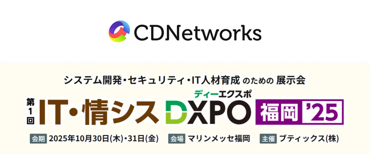 2025年10月30日(木)と31日(金)、福岡で開催される「IT・情シスDXPO福岡’25」に、株式会社シーディーネットワークス・ジャパン(CDNetworks)が協賛します。このイベントは、最新のITインフラやセキュリティ技術が集まる場であり、特に注目を集めること間違いなしです。