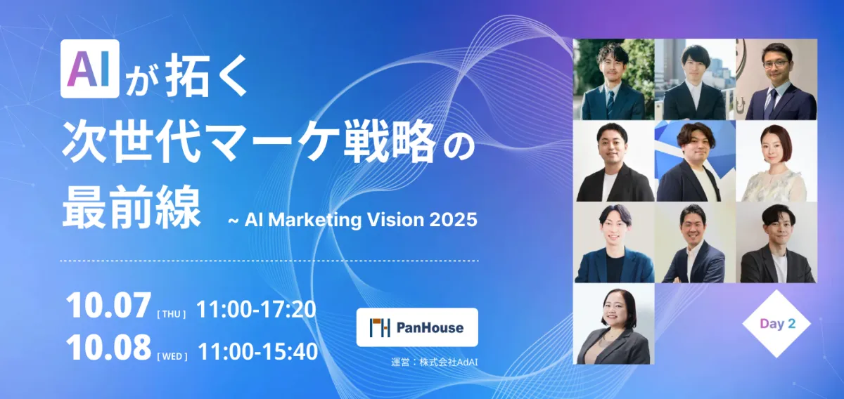 株式会社immedio(以下、immedio)は、次世代のマーケティング戦略を議論する「AI Marketing Vision 2025」において、重要なセッションに登壇します。このカンファレンスは、2025年10月7日と8日の2日間にわたり開催されるもので、広告業界のトップランナー21名が集結し、AIとマーケティングの交差点について深く掘り下げる貴重な機会です。