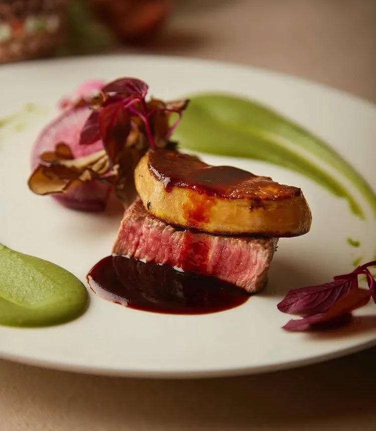 - - Main Dish: 牛フィレ肉とフォアグラのロッシーニ
