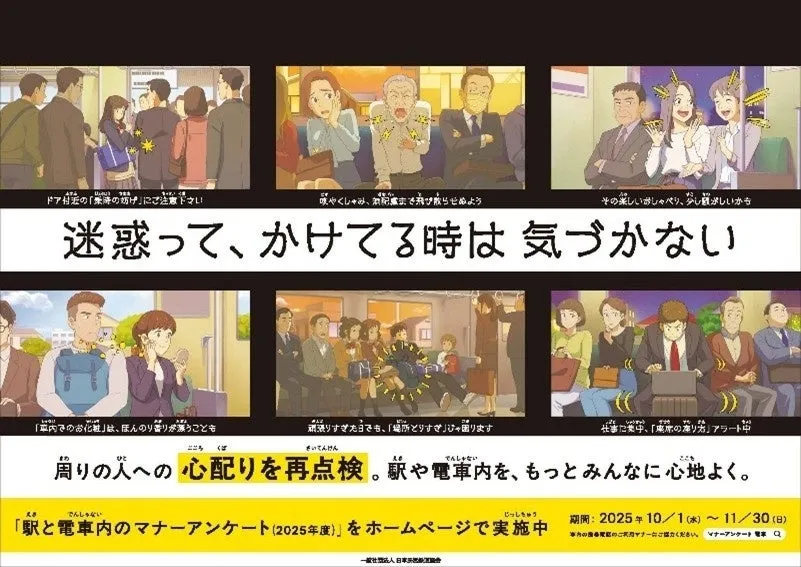 一般社団法人日本民営鉄道協会は、2025年度の「駅と電車内のマナーに関するアンケート」を実施し、5,202名からの回答を集めました。この調査は、駅や電車内のマナー向上を目的として毎年行われており、今年度の結果が注目されています。
