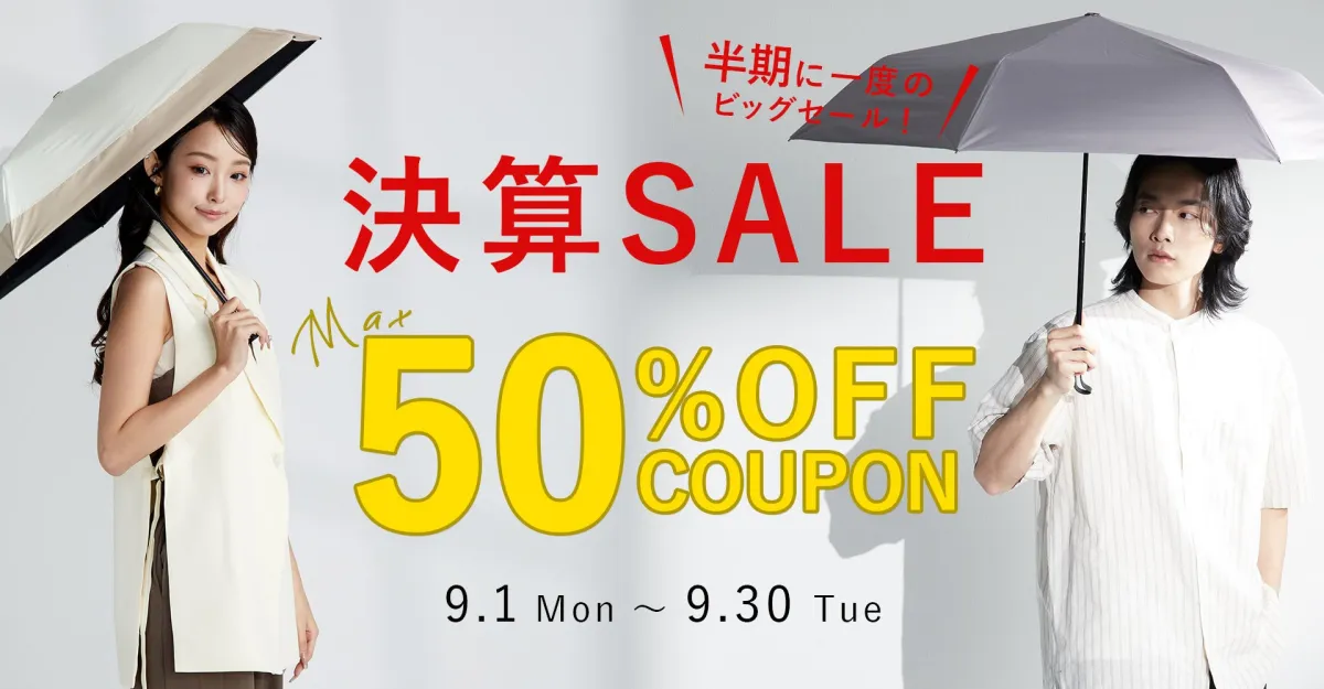 KIZAWA Official Shopでは、全商品対象の「決算セール」を実施しています。このセールでは、全ての商品が最大50%OFFとなる特別な機会です。厳しい残暑に合わせて、日除け対策に最適な日傘や、これからの季節で必要になる雨傘など、様々なアイテムをお得に手に入れるチャンスです。