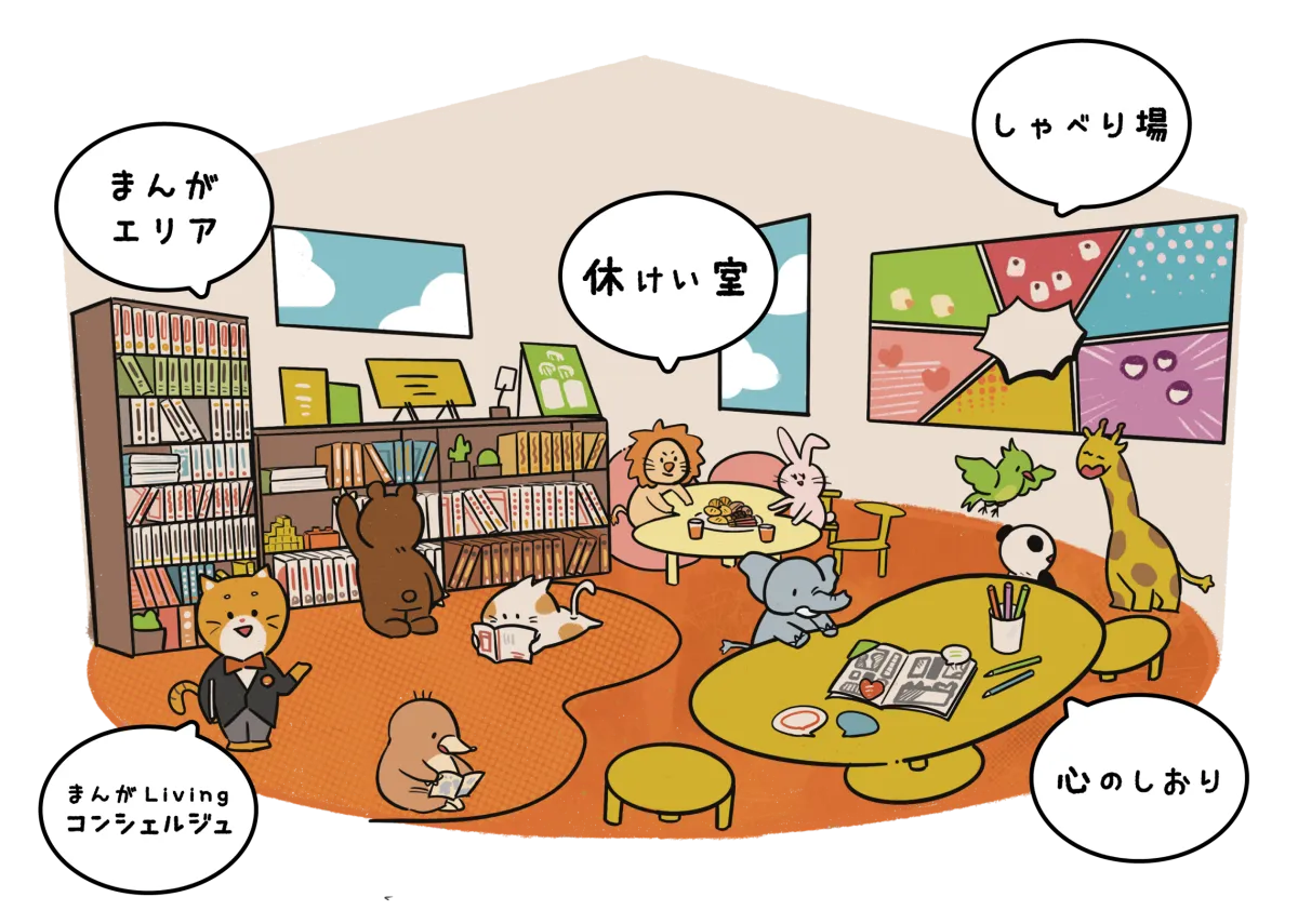 「まんがLiving」という名前には、ふたつの重要な意味があります。一つは、人が抱える健康課題に寄り添い、生きる力を与えること。そしてもう一つは、学校や家庭で感情を共有できる場がない子どもたちに、自然と集まってリラックスできるスペースを提供する「リビングルーム」としての役割を果たすことです。