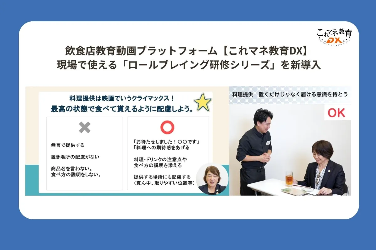 飲食店経営におけるマネジメントや教育の重要性がますます高まる中、現場の接客力向上や業務改善に特化した動画教育プラットフォーム「これマネ教育DX」が注目を集めています。この度、新たに導入された「ロールプレイング研修シリーズ」は、実際の店舗シーンをリアルに再現し、インタラクティブな学びを提供します。