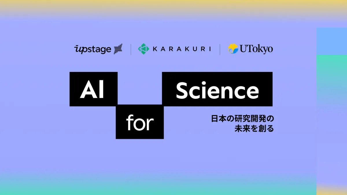 2025年11月10日、東京において、株式会社Upstageと東京大学、カラクリ株式会社が協力し、AI技術を駆使した新たな科学研究支援プロジェクト「AI for Science」を発表しました。このプロジェクトでは、生成AIを用いて科学的発見の進行過程を根本的に変え、研究者が直面する様々な課題を解決することを目指しています。