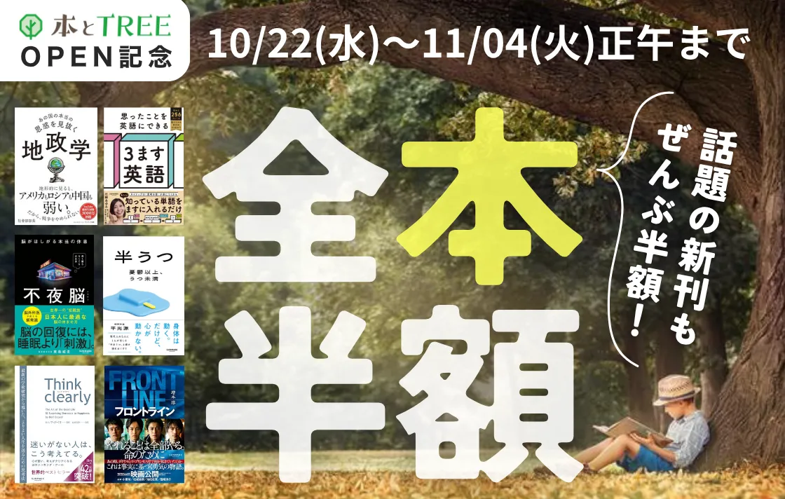 新しい電子書籍ストア「本とTREE BOOK STORE」のオープンを記念して、全電子書籍が半額という特別セールが実施されます。この機会を見逃さず、ぜひ独自の読書体験を楽しんでみてください。特設サイトもぜひチェックして、あなたにぴったりな本を見つけましょう!
