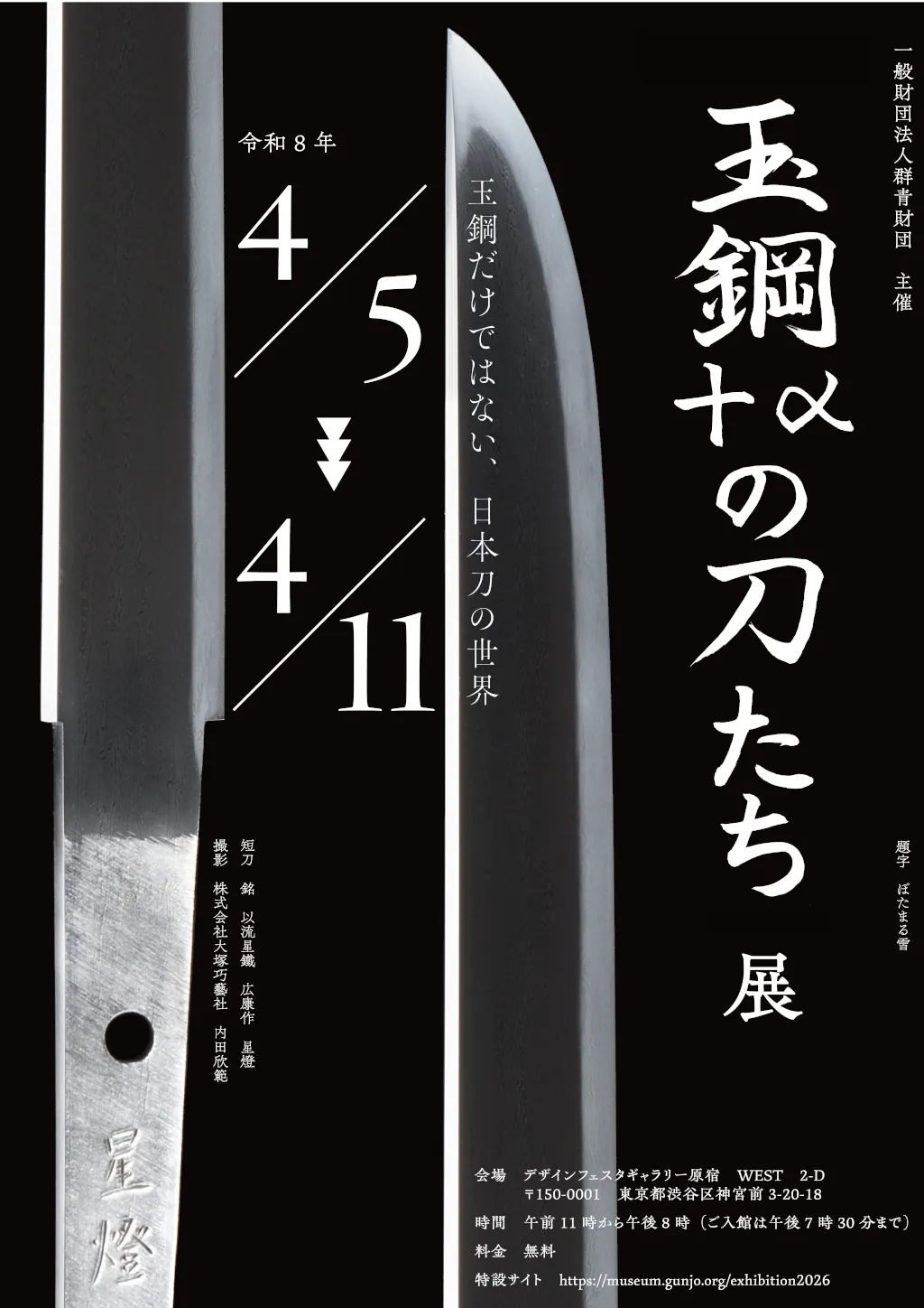 東京都原宿にあるデザインフェスタギャラリー原宿にて、2023年4月5日から11日までの期間、群青財団主催による企画展「玉鋼+αの刀たち」が開催されます。本展では、「玉鋼だけではない、日本刀の世界」というテーマに基づき、近現代の日本刀を通じて刀剣や艦船に興味を持つ来場者を迎え入れます。一般観覧は無料で進められ、文化財保護への意識を高めることを目的としています。