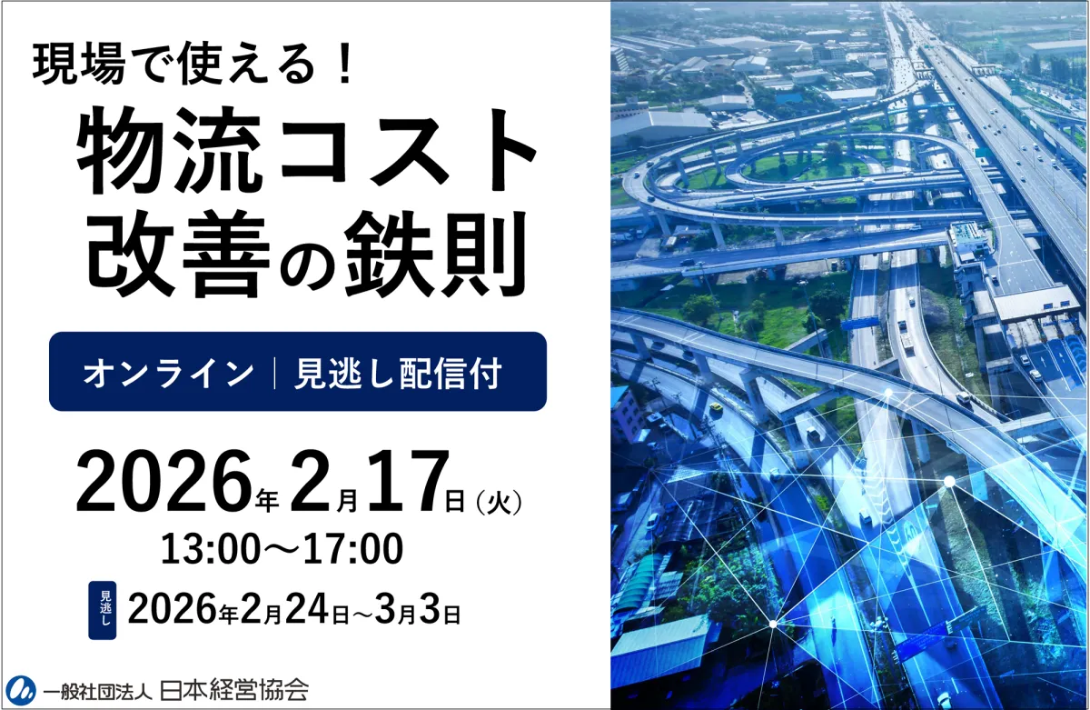 一般社団法人日本経営協会(NOMA)が主催するオンラインセミナー「現場で使える!物流コスト改善の鉄則〜物流二法改正対応〜」が、2026年2月17日(火)に開催されます。このセミナーは、物流コストの構造を深く理解し、値下げ交渉に頼らない改善手法を学ぶことができる貴重な機会です。特に今年は、燃料費や人件費の高騰、法制度の改正に伴い、物流業界はさらなるコスト管理の強化が求められています。