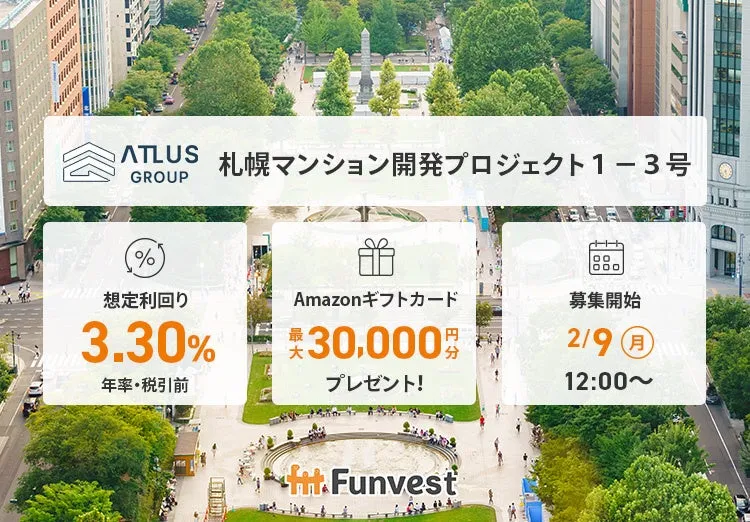 投資を通じて未来を共に創ることを目指すクラウドファンディングサービス「Funvest(ファンベスト)」が、新しいファンド「アトラスグループ 札幌マンション開発プロジェクト1-3号」の募集を2026年2月9日から開始します。このプロジェクトは、出資者の資金を用いて株式会社アトラスグループが建設する販売用不動産の資金として運用されます。この機会を利用して、地域に貢献しながら投資を行うチャンスが広がります。