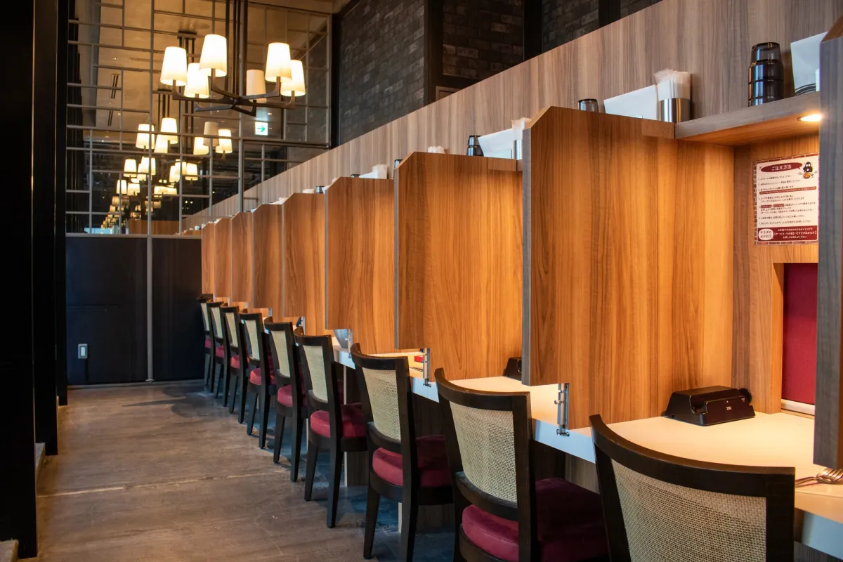 「ENJOY PASTA COUNTER」は、スープスパゲッティを心ゆくまで楽しむために設計されました。席の仕切り板により、隣のテーブルとプライバシーが保たれ、まるで自分だけの特別な空間でスパゲッティに没頭できるのです。注文は、席に設置されたタブレットから行うため、スタッフとの接触を最小限に抑えながら、スムーズに食事を楽しむことができます。メニューはスープスパゲッティ専門となっており、「単品」や「ドリンクセット」を選ぶことができます。さらにサラダ食べ放題やさまざまなオプションメニューも充実し、未体験のスープスパゲッティの楽しみ方を提供します。