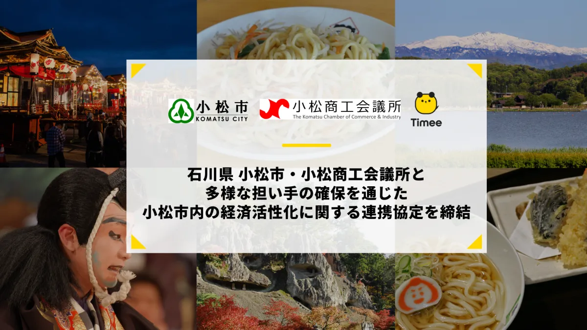 2023年、スキマバイトのサービスを提供する株式会社タイミーが、石川県小松市および小松商工会議所と連携協定を締結しました。この協定は多様な働き手を確保し、小松市の経済をさらなる活性化へと導くことを目的としています。