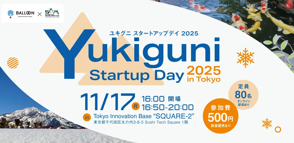 2025年11月17日(月)、東京の有楽町で「Yukiguni Startup Day 2025」が開催されます。このイベントは、新潟県の小千谷市と南魚沼市が共催し、地域の起業家育成支援事業の成果を紹介し、スタートアップの未来を語り合う場となります。