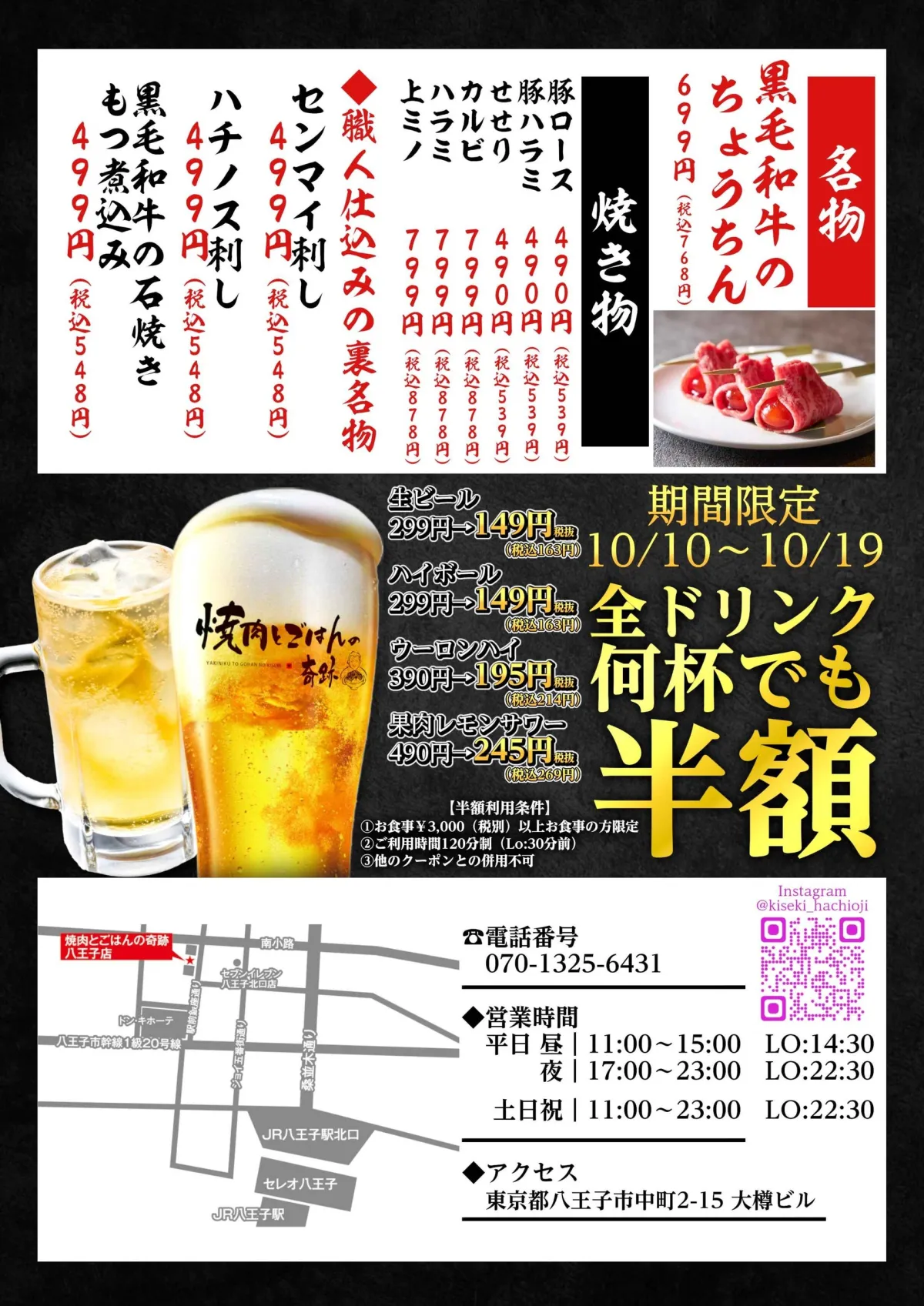 - - 店名: 焼肉とごはんの奇跡 八王子店