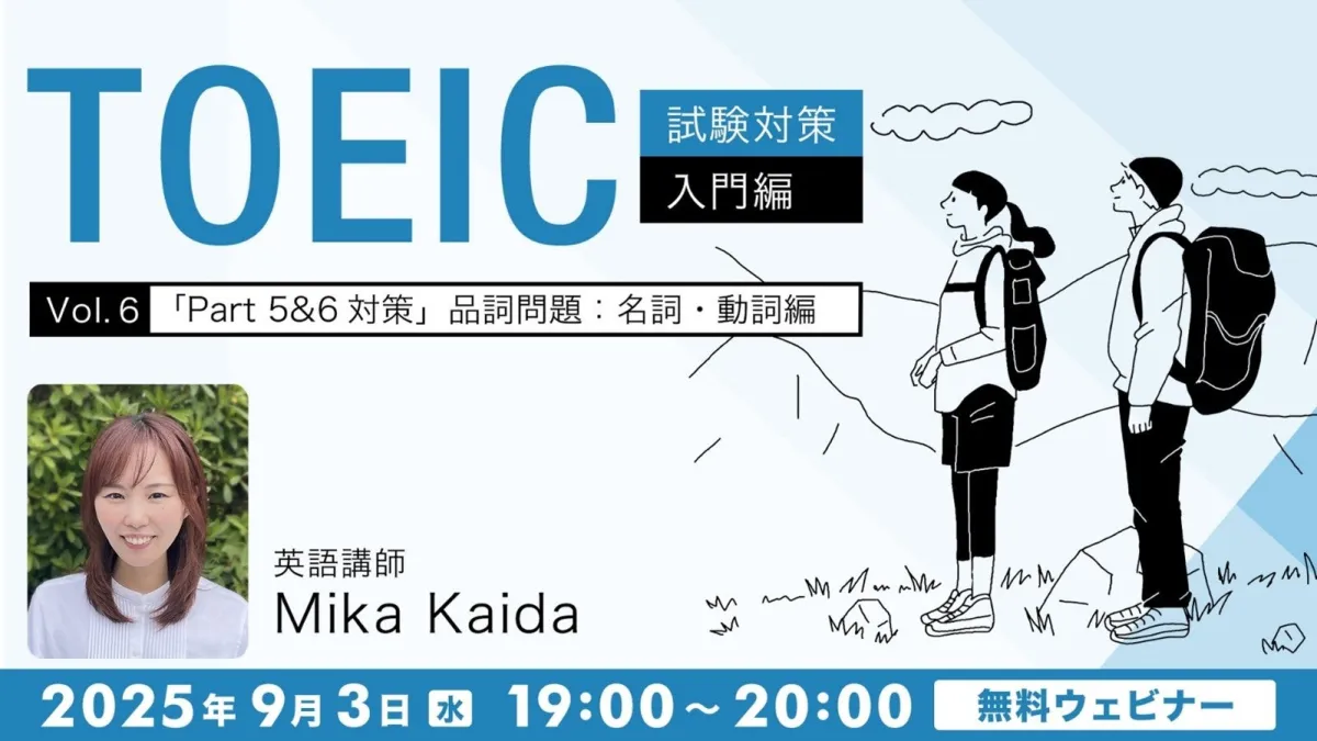 株式会社クリーク・アンド・リバー社は、TOEIC L&Rテストを受験予定の方を対象とした無料のオンラインセミナーを開催します。セミナーは2025年9月3日(水)と17日(水)に行われ、「Part 5&6対策」と題して、品詞問題に焦点を当てています。