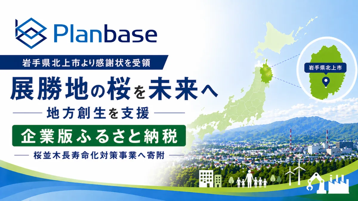 株式会社プランベースは、岩手県北上市に企業版ふるさと納税を通じて寄附を行い、その活動に対して感謝状を授与されました。この寄附の目的は、北上市の名所である展勝地の桜並木の保全を支援することです。
