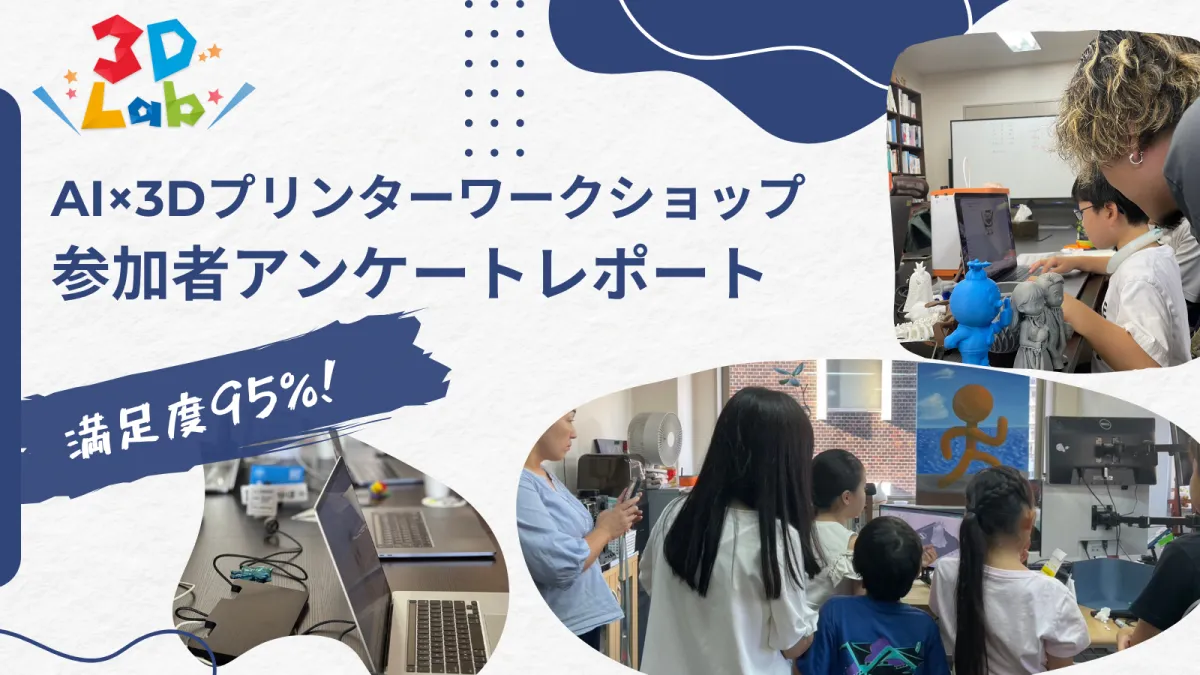 これまでに実施した「3DLabワークショップ」では、延べ200名以上が参加し、なんと95%の参加者が「5点満点」と評価する高い満足度を誇っています。参加者は小学生の親子だけでなく、経営者や教育者、エンジニアなど、多岐にわたる層が揃いました。参加者の声には、「子どもの自己肯定感が上がった」「楽しくAIデザインを学べた」との感想が寄せられています。