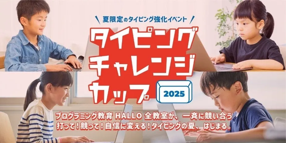 お盆休みを利用して、お子様がスキルを磨ける絶好の機会がやってきました!株式会社やる気スイッチグループと株式会社Preferred Networksが共同で展開するプログラミング教育「HALLO」では、全国の年長から中学生を対象としたタイピングコンテストを開催しています。特に注目なのが、参加費が無料であり、HALLOに通っていない子どもたちも気軽に参加できる点です。コンテストに参加することで、楽しくタイピングのスキルを向上させることができます。