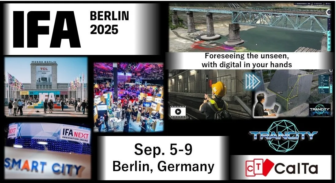 CalTaがIFA 2025に出展する最大の目的は、TRANCITYを通じて、デジタルツイン技術を基にした新たなインフラ管理の可能性を広めることです。TRANCITYは、現場でのデータを活用して、インフラの効率的な運用と持続可能な発展を目指すソリューションであり、2025年のCESでの反響があったこの技術を、欧州での展開に向けて広めていきます。