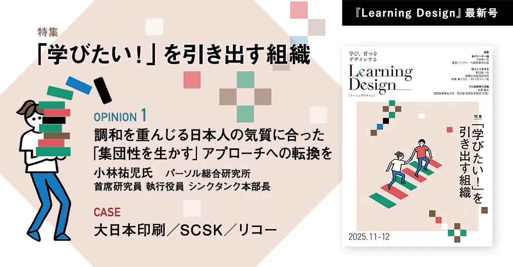 人材開発専門誌『Learning Design』の2025年11-12月号が、株式会社日本能率協会マネジメントセンター(JMAM)によりWeb公開されました。この号では「『学びたい!』を引き出す組織」というテーマのもと、変化が激しく、自己成長が求められる現代において、どのように組織での学習意欲を引き出すかを考察しています。