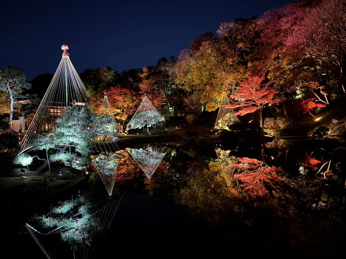 東京都文京区の肥後細川庭園で、2025年11月22日(土)から30日(日)まで特別夜間イベント「肥後細川庭園秋の紅葉ライトアップ『ひごあかり』」が開催されます。このイベントでは、紅葉が色づく美しい庭園の夜景を楽しむことができ、特に高低差を利用したライティングが印象的です。