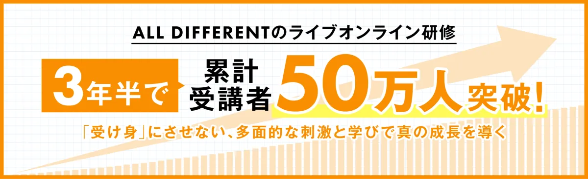 ALL DIFFERENTのライブオンライン研修は、受講者数の増加だけでなく、その質や実効性についても高い評価を受けています。企業が抱える育成に関する課題を解決するために、今後も革新を続け、より多くの学びの機会を提供することに期待が寄せられています。これからも、ALL DIFFERENTの活躍から目が離せません。