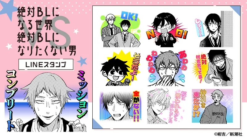 株式会社Creative Plusが手掛ける、人気マンガ『絶対BLになる世界VS絶対BLになりたくない男』のLINEスタンプが配信開始されました。この作品は、思わず笑ってしまうほどユニークな設定とキャラクターたちの魅力で支持を集めている話題作です。