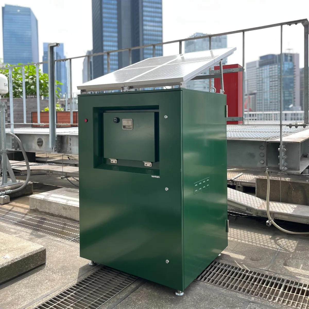「スマートコンポスト」は、屋上などの限られたスペースにも設置可能で、AC電源や排水設備を必要としないソーラー発電によって自動駆動します。また、特殊な微生物群「コムハム」によって生ごみを最短1日で堆肥化する機能を持っています。