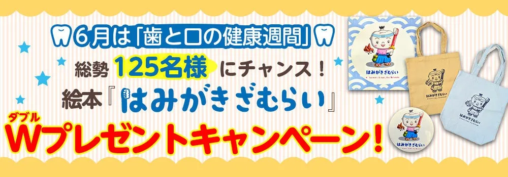 毎年6月の第一週は「歯と口の健康週間」として、歯科疾患の予防の重要性が強調されています。特に、幼少期から正しい習慣を身につけることが、お子様の健やかな成長に大きく寄与するのは間違いありません。そのため、今年も楽しく歯みがきを学んでもらうことを目的として、絵本『はみがきざむらい』をフィーチャーしたWプレゼントキャンペーンを開催します。