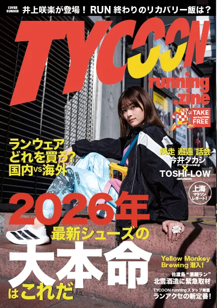 このZINEの制作にあたっては、スニーカーカルチャーの最前線を行く今井タカシが監修し、全80ページの内容で構成されています。表紙には人気モデルの井上桜楽さんが登場し、ページをめくるごとに新しい発見が待っています。ZINEでは各メーカーの担当者による最新シューズのおすすめや、「TYCOON」が自信を持って推奨するランニングアクセサリーの特集記事も充実。特にHOKAやTHE NORTH FACEなど、全14ブランドから57モデルが取り上げられており、各モデルの特長がわかりやすく紹介されています。