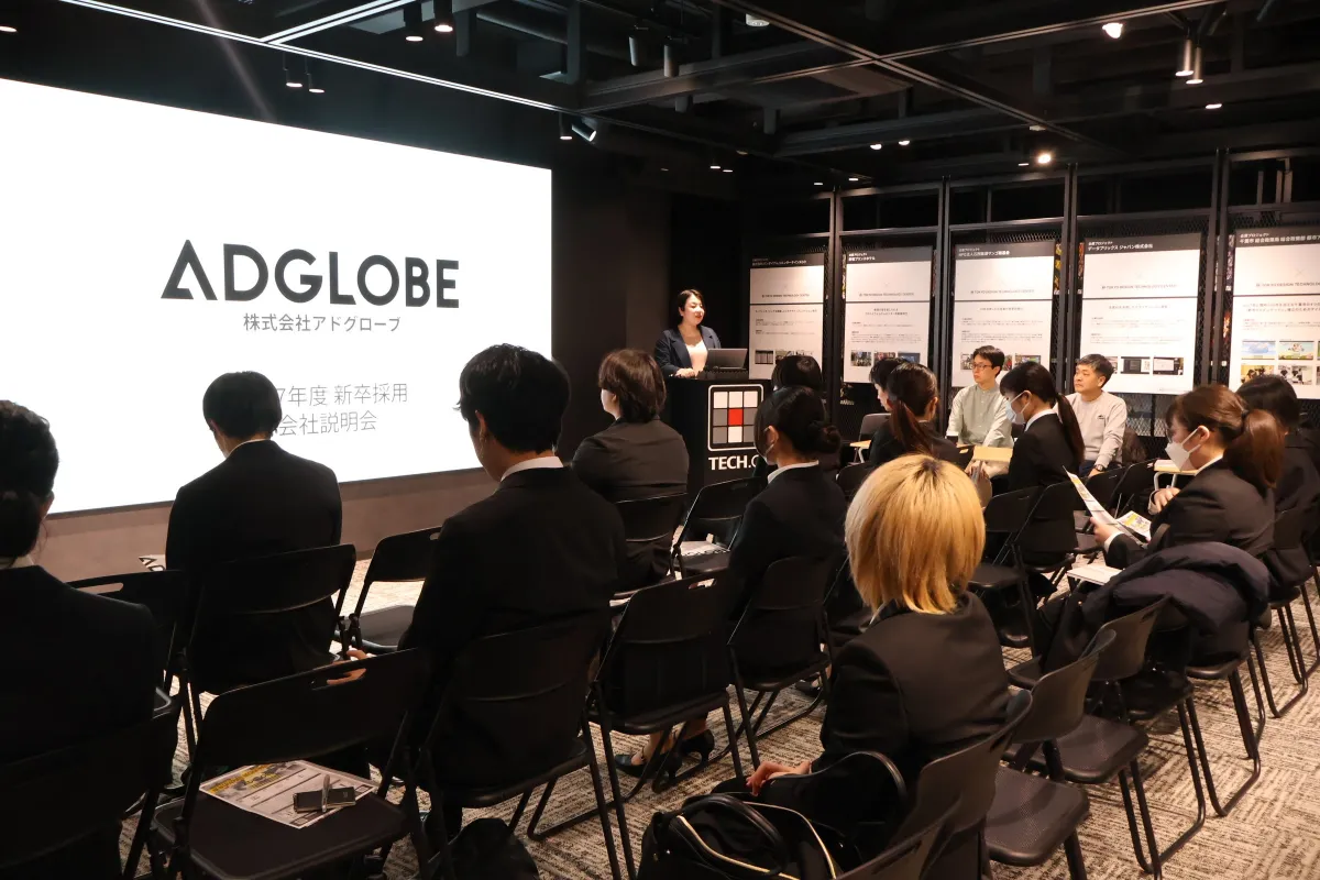2023年△月△日、東京デザインテクノロジーセンター専門学校(TECH.C.)にて株式会社アドグローブによる会社説明会が開催されました。このイベントは、業界での成功を目指す学生たちにとって非常に貴重な機会となり、熱気あふれる場となりました。