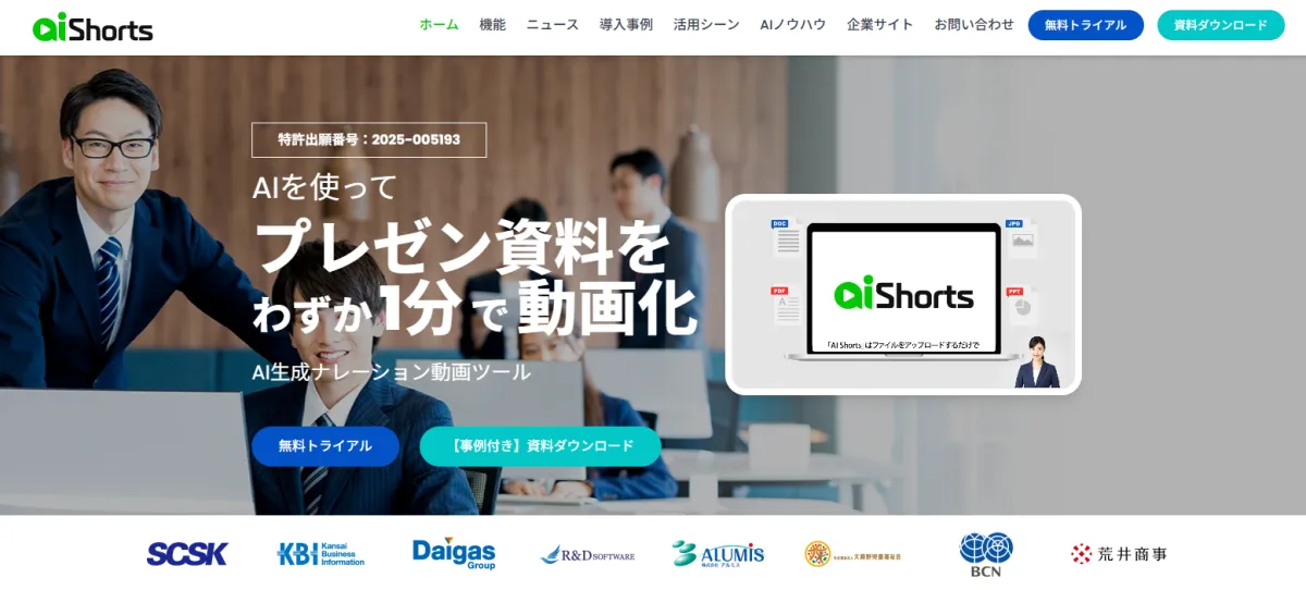 AI Shortsは、企業がお持ちのPDFやPowerPoint、JPGなどの資料をアップロードすることで、AIが内容を解析し、最適化された台本を生成します。そしてその台本にナレーションを追加して動画を作成する画期的なサービスです(特許出願番号:2025-005193)。