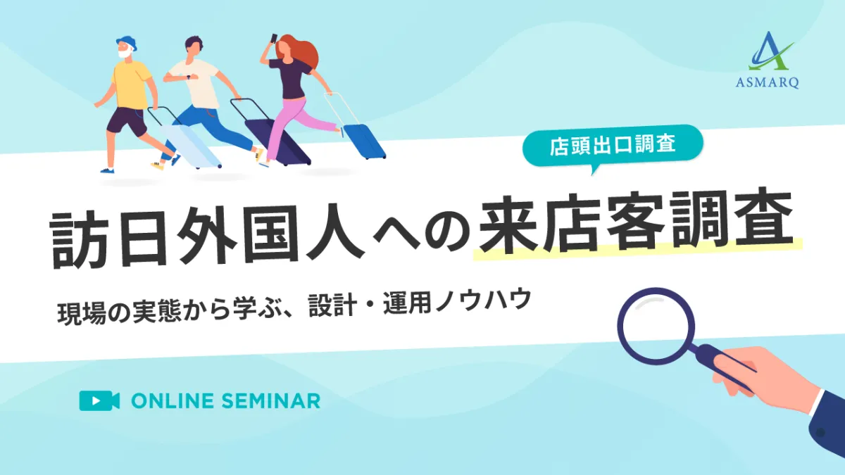 株式会社アスマークが主催するセミナー「訪日外国人を対象とした来店客調査」が、2026年4月21日(火)13時00分から開催されます。このセミナーでは、訪日外国人の行動傾向や意識を深く理解するための調査手法を詳しく解説します。