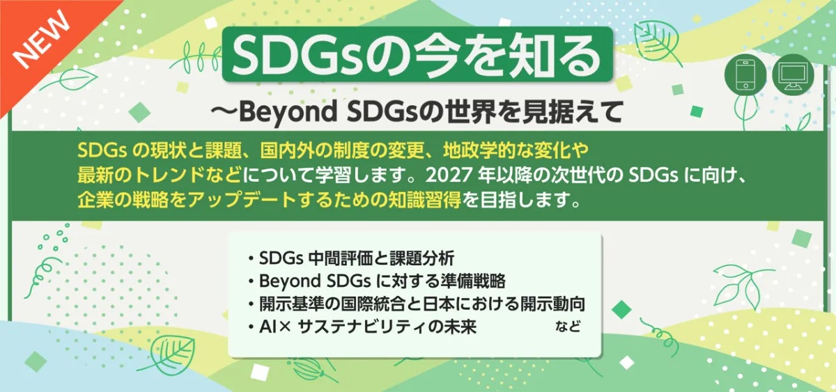 最後に、学びを深めるための「eラーニングライブラリ®」はマルチデバイスに対応しており、いつでもどこでも学ぶことができます。これにより、企業は新たな視点を得て、持続可能性を考慮したビジネス戦略を形成するための基盤を築くことができるのです。