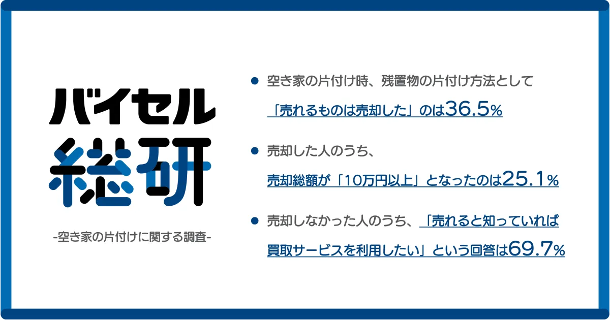 リユースサービス「バイセル」では、様々な品物を対象に買取を行っており、利用者が気軽に利用できる体制を整えています。空き家の整理においても、不要品を販売することで、経済的利益を得ることができるだけでなく、環境保護にも貢献できるでしょう。今後ますます進展が期待されるリユース市場の整備に向けて、多くの人がその利用を考える機会が増えることを願っています。