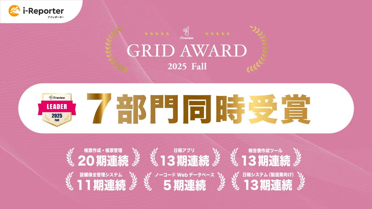 i-Reporterが「ITreview Grid Award 2025 Fall」で見事7部門受賞