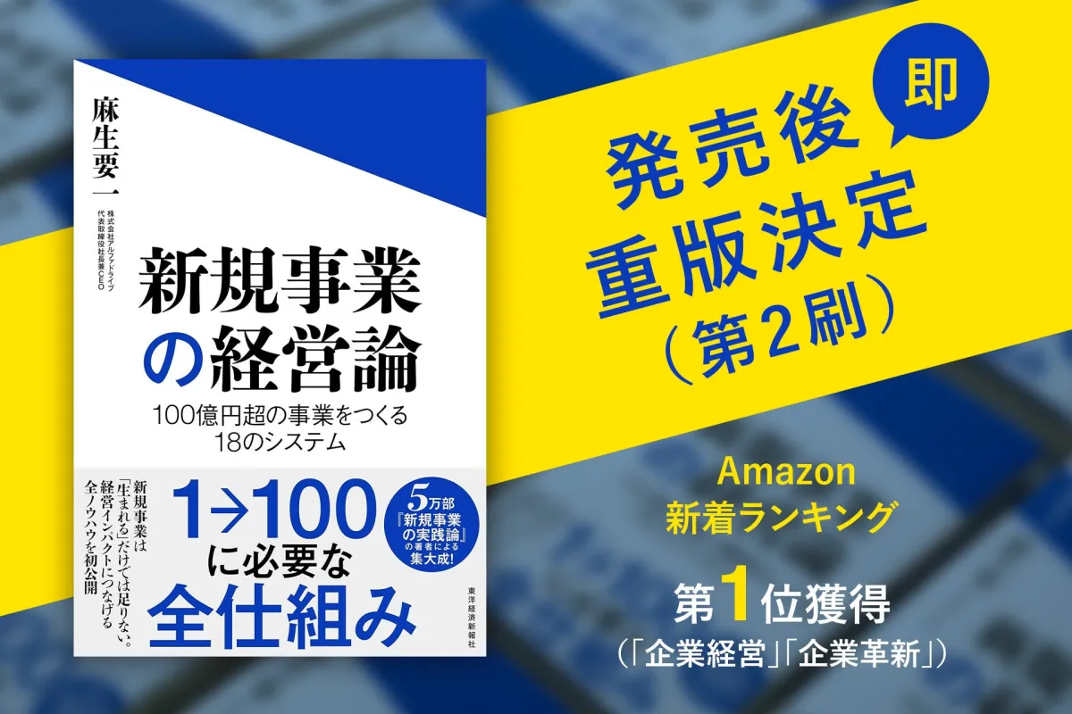 2025年10月29日に、アルファドライブグループの代表取締役社長である麻生要一氏が著した新刊『新規事業の経営論: 100億円超の事業をつくる18のシステム』が、発売直後に大きな反響を呼びました。同書は、著者のビジョンである『新規事業を企業の成長へ変える経営システム』をテーマに据え、新規事業を立ち上げようとする人々に向けた具体的な方法論が伝授されています。