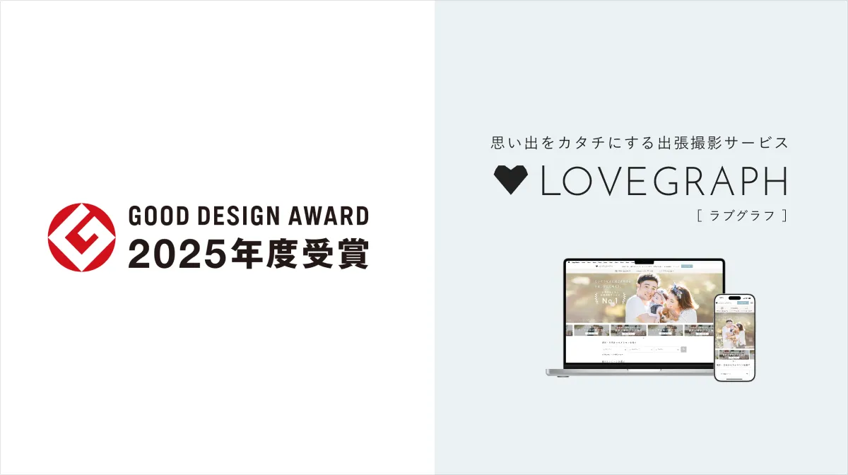 出張撮影サービス「Lovegraph(ラブグラフ)」が、2025年度グッドデザイン賞を受賞しました。この受賞は、創業から10年間一貫して取り組んできたサービスのデザインと実績が評価された結果です。