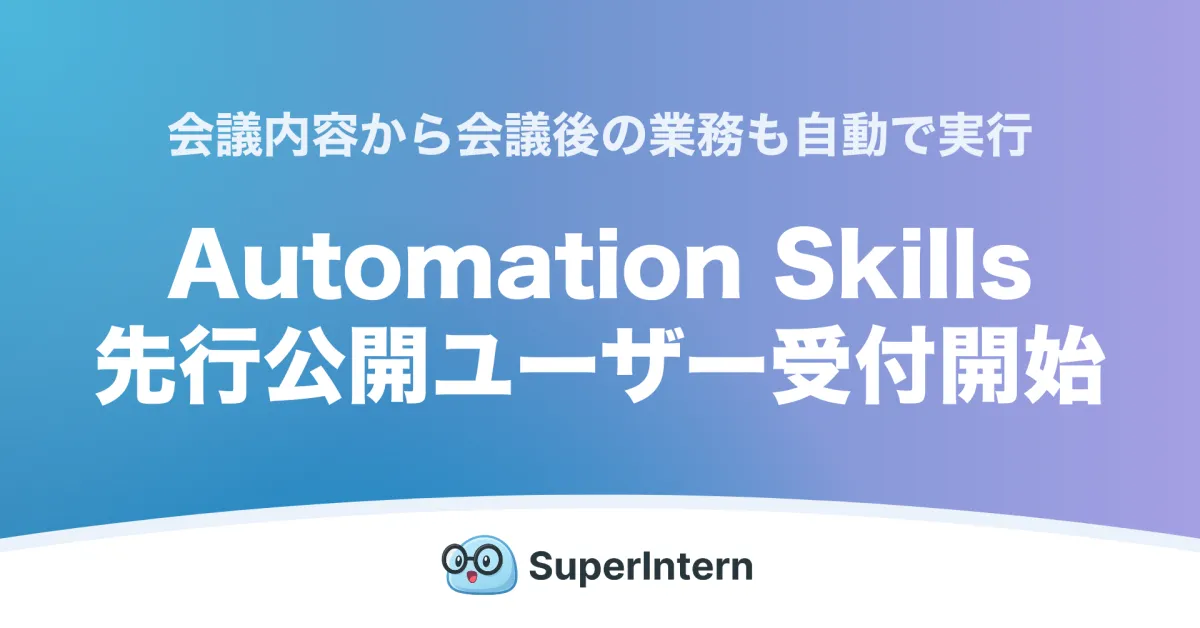 また、「Automation Skills」の一般提供に先立って、すでにSuperInternの基本機能を無料でお試しいただけます。これにより、「会議を起点に仕事を自動化する」ための基盤体験を得られるチャンスが提供されます。