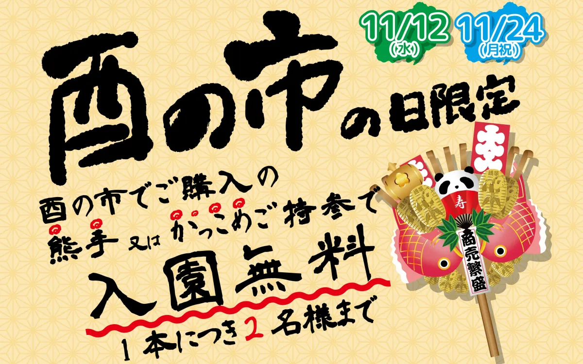 今年の「酉の市」をお祝いしながら、伝統の祭りと共に楽しむことができるこの素晴らしいイベント。ぜひ、熊手を片手に花やしきで特別な日を過ごしてください。皆様のご来園を心よりお待ちしております。詳細は