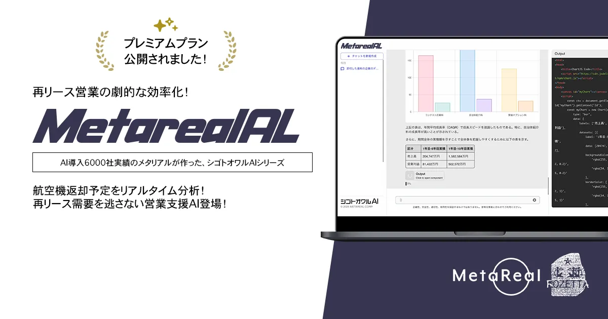 Metareal ALは、航空機リース業界における新たな可能性を切り開く存在です。高精度な需給予測と即時対応ができるこのAIエージェントは、今後の航空機リース市場に革新をもたらすでしょう。航空関連のビジネスを行う企業は、ぜひこの機会にAIの力を体感してみてください。さらなる情報やお問合せは、