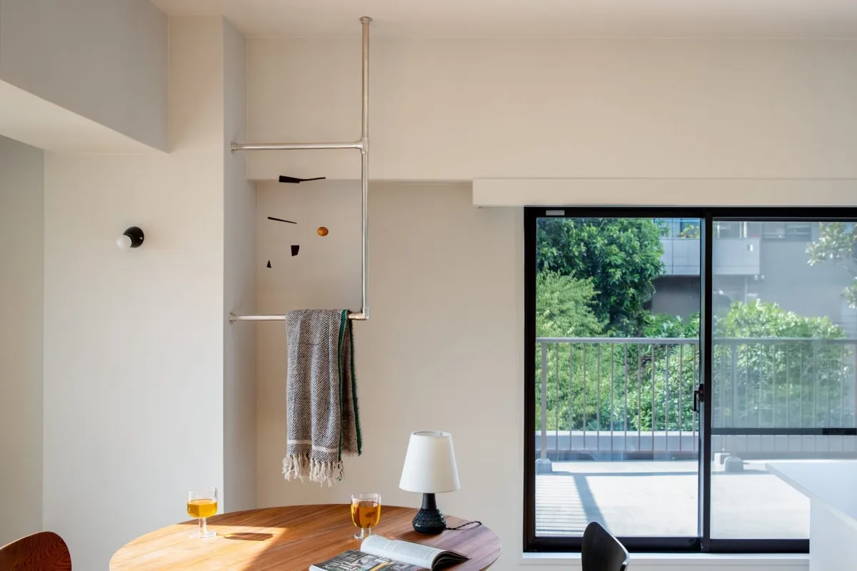 美しさだけでなく、構造的な強度も兼ね備えるために無垢ステンレスを採用した『メタルハンガーライン』は、非常に滑らかな質感を持ちます。その伸びやかさは、視覚的に空間を広げ、印象を強める要素となります。また、周囲の色を微かに反射し、周囲の素材と自然に融合する柔軟性を持っています。