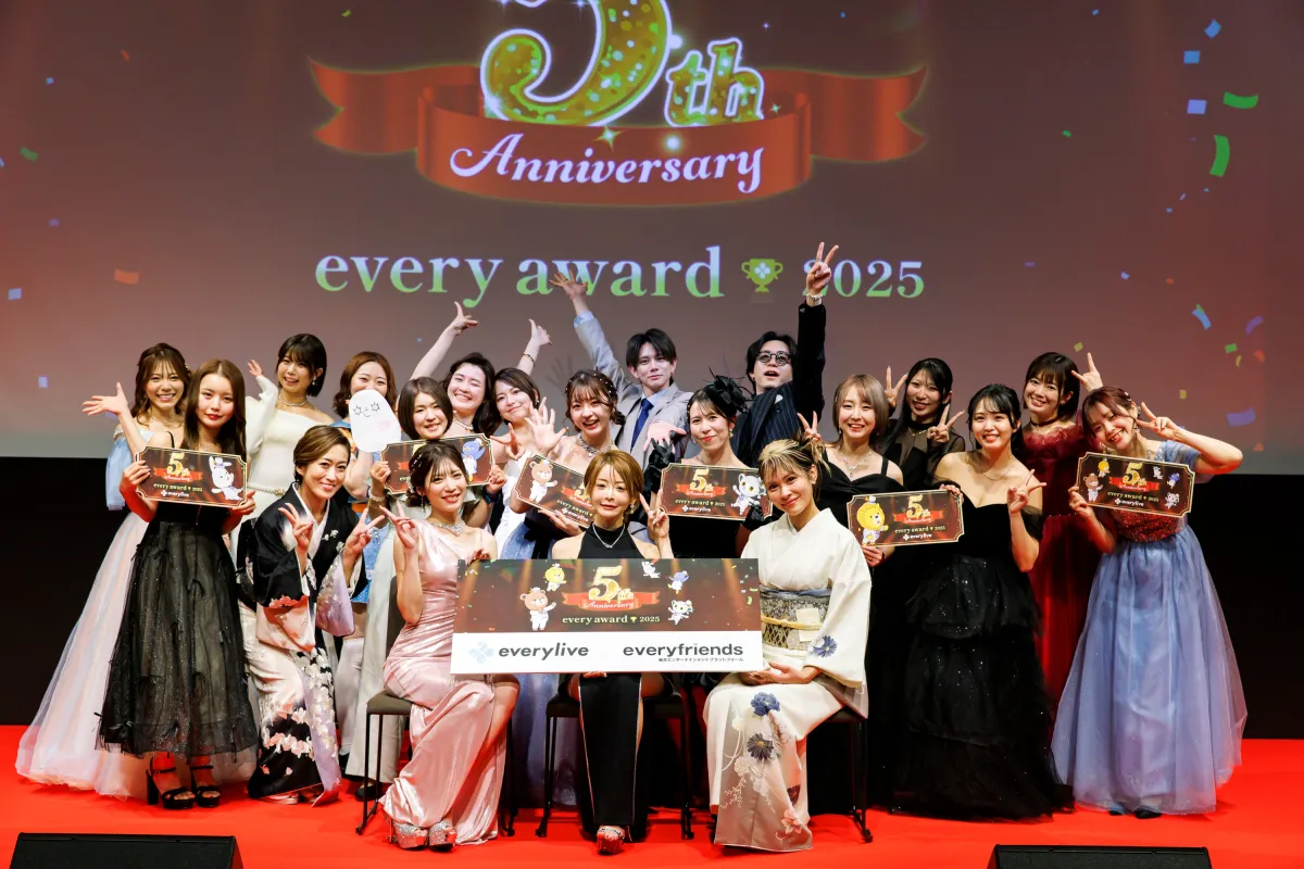 ライブ配信アプリ「everylive(エブリライブ)」の5周年を祝う授賞式イベント「every award 2025」が、2026年1月25日(日)に開催されました。エブリライブ株式会社が主催するこのイベントは、年間を通じて活躍を見せたライバーたちを表彰する特別な祭典です。