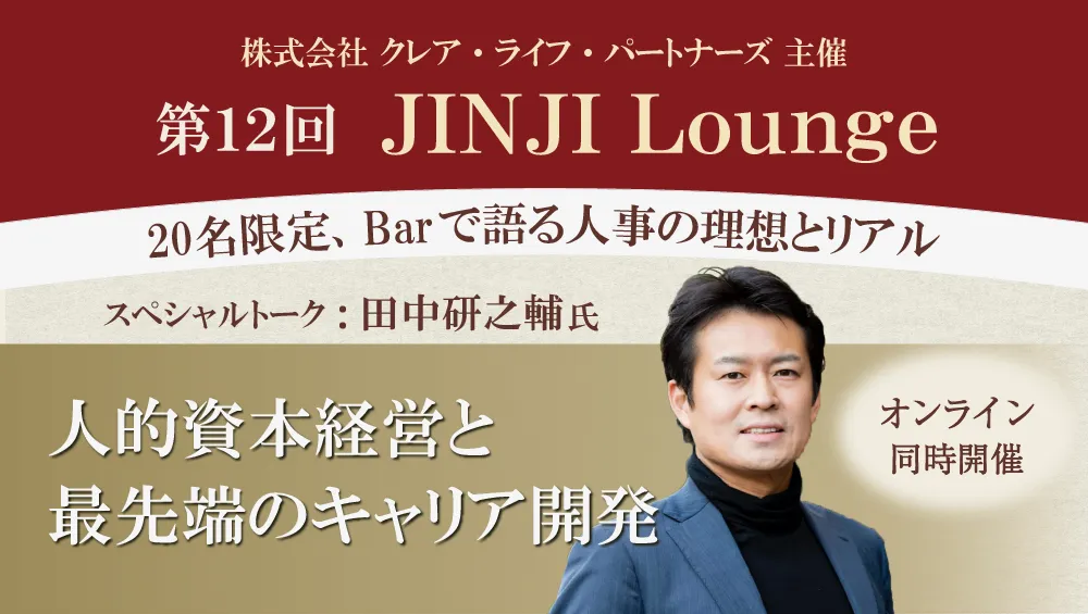 2026年2月10日、新宿西口のバー「BAR FIVE Arrows」にて、株式会社クレア・ライフ・パートナーズによる特別イベント「第12回 JINJI Lounge」が開催されます。このイベントでは、人的資本経営の権威である田中研之輔氏が特別ゲストとして登壇し、今の時代に求められるキャリア開発の最先端について語ります。